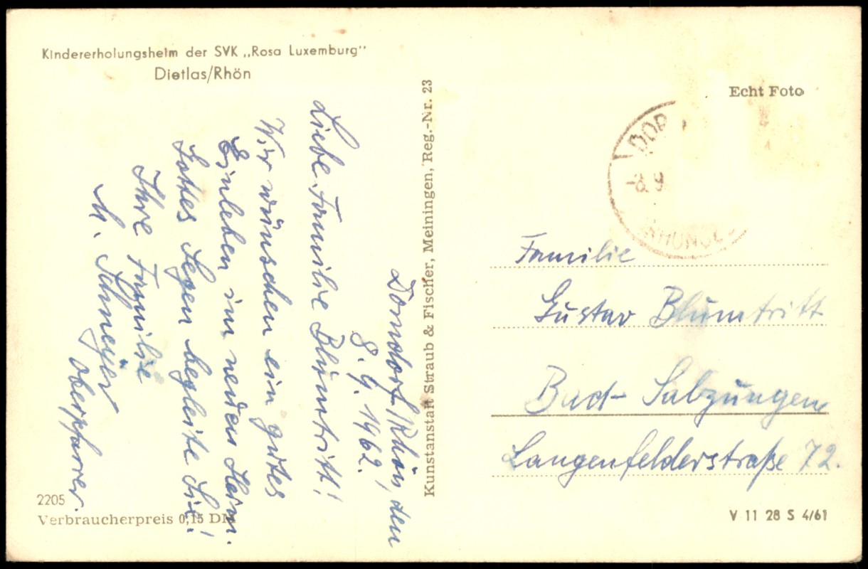 Ansichtskarte: Kindererholungshelm der SVK Rosa Luxemburg - Dietlas (Rhön)-Dorndorf (Rhön)