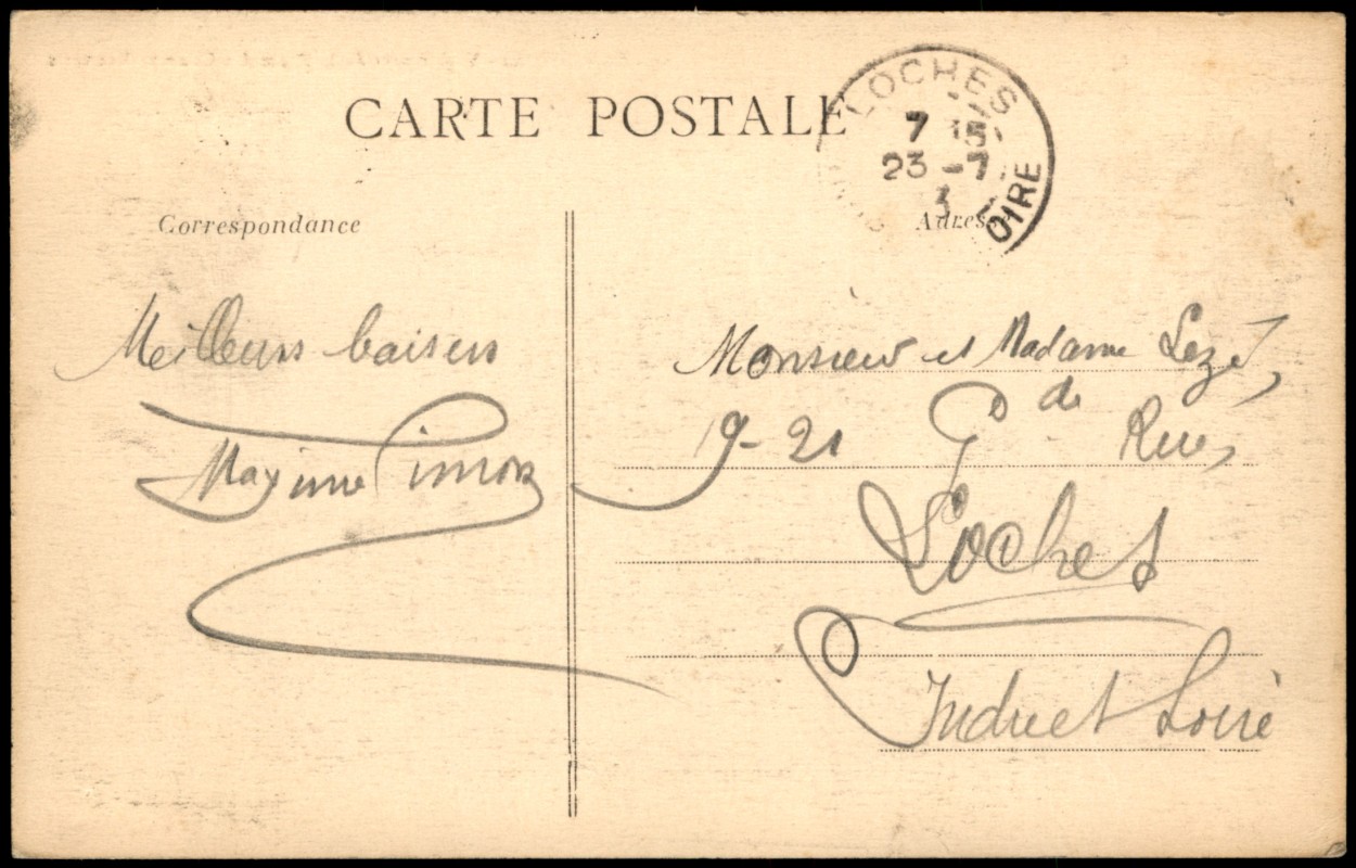 - Ansicht einer großen Welle, die nahe der Porte des Champs-Vauverts in Saint-Malo an der Côte d'Émeraude bricht. Im Hintergrund sind Teile der Stadtbefestigung sichtbar. Die Karte wurde vom Verlag Arlaud-Nozais, Nantes, unter der Seriennummer 19 herausgegeben.