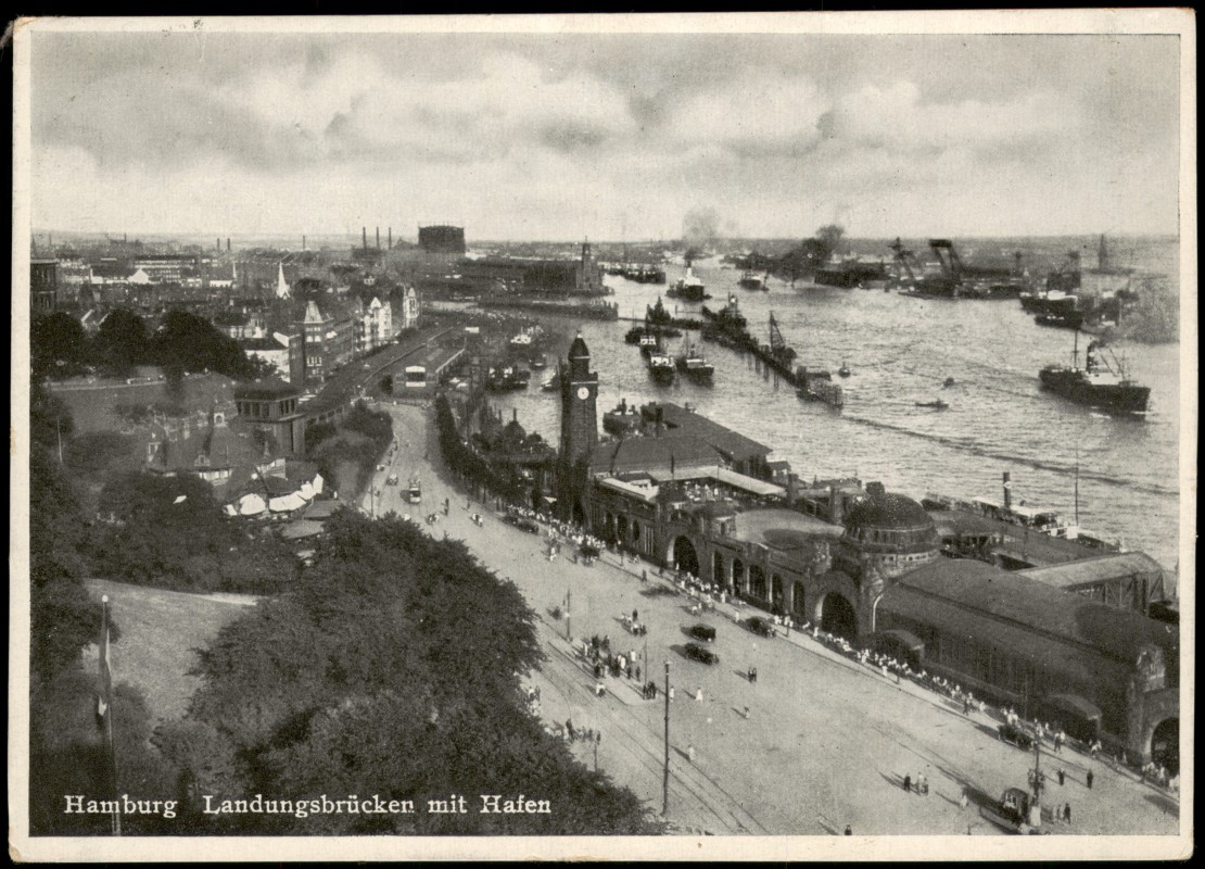 Foto Karte: Landungsbrücken, Hafen aus der Vogelschau-Perspektive - St. Pauli-Hamburg