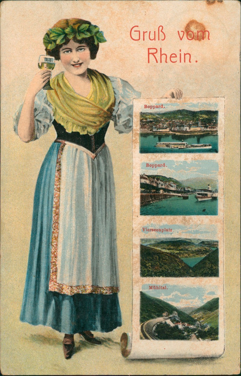 Ansichtskarte: Weinkönigin Mehrbild Stadt Vierseenplatz - Boppard