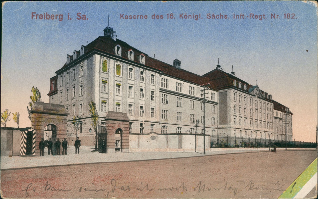 Ansichtskarte: Kaserne des 16. Königl. Sächs. Inft-Regt. Nr. 182. - Freiberg (Sachsen)