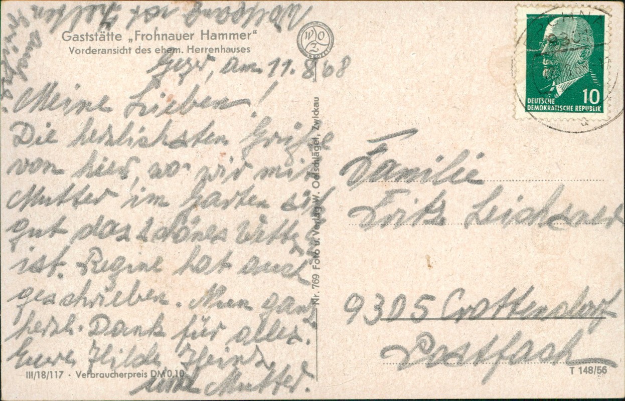 Foto Karte: Frohnauer Hammer Gaststätte Vorderansicht des ehem. Herrenhauses - Frohnau-Annaberg-Buchholz