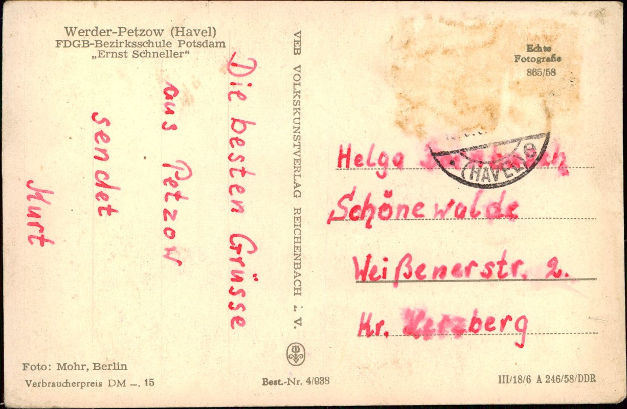 Ansichtskarte: FDGB-Bezirksschule Potsdam Ernst Schneller Fahnen - Werder (Havel)