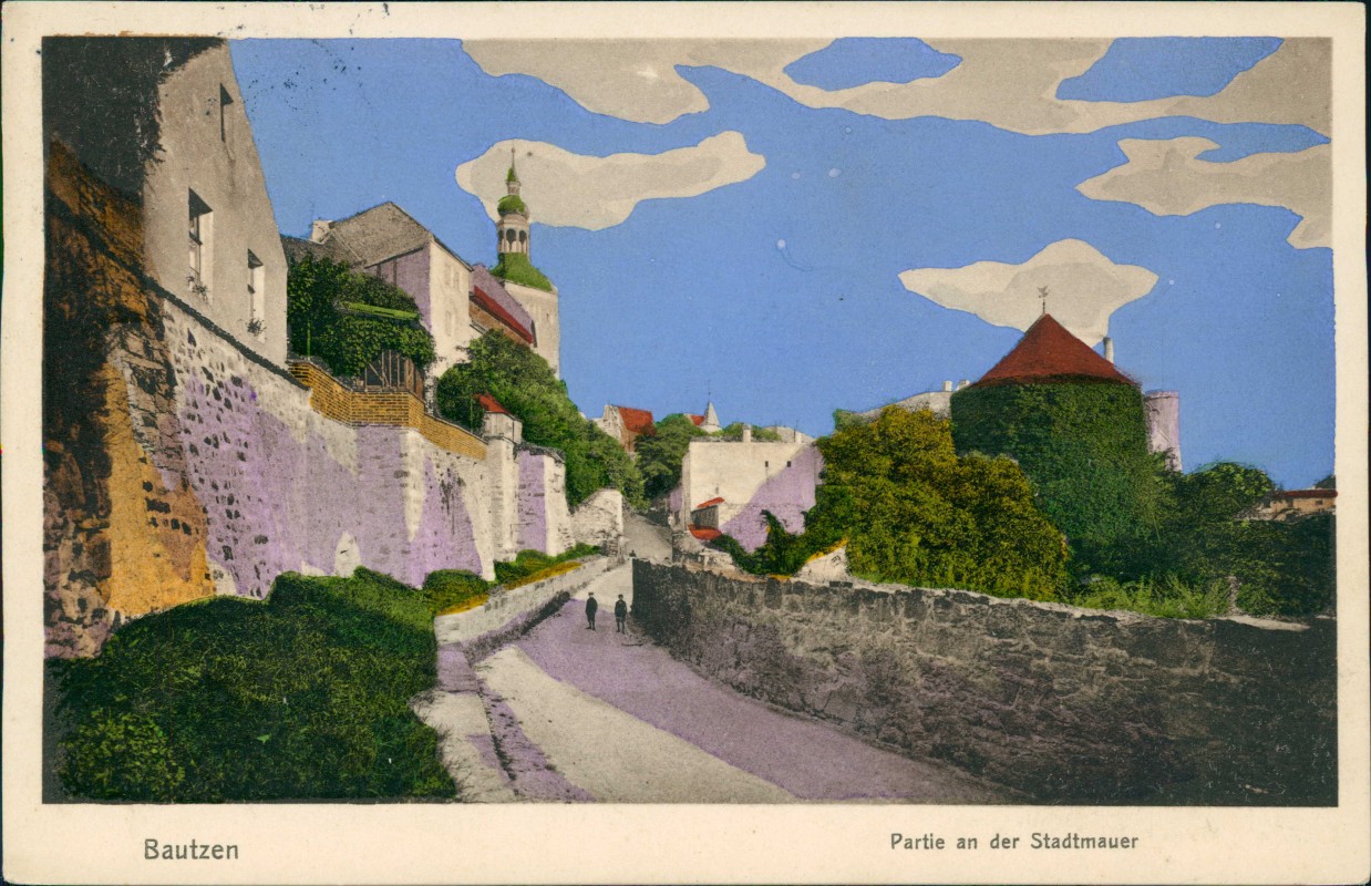 Ansichtskarte: Partie an der Stadtmauer, geätzte Wolken - Bautzen