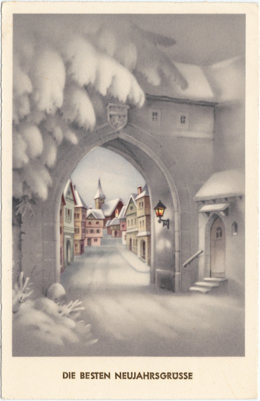 - Neujahrsgrüße: Torbogen und Städtchen