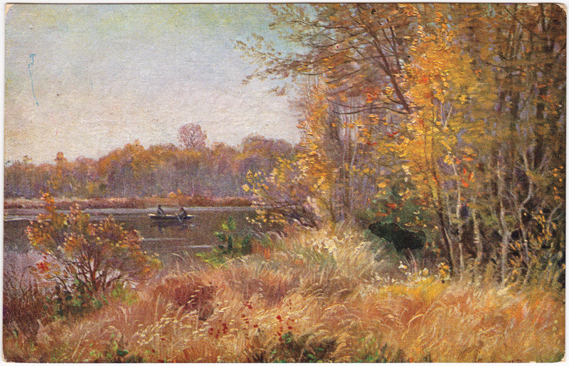 Künstlerkarte: See mit Ruderboot
