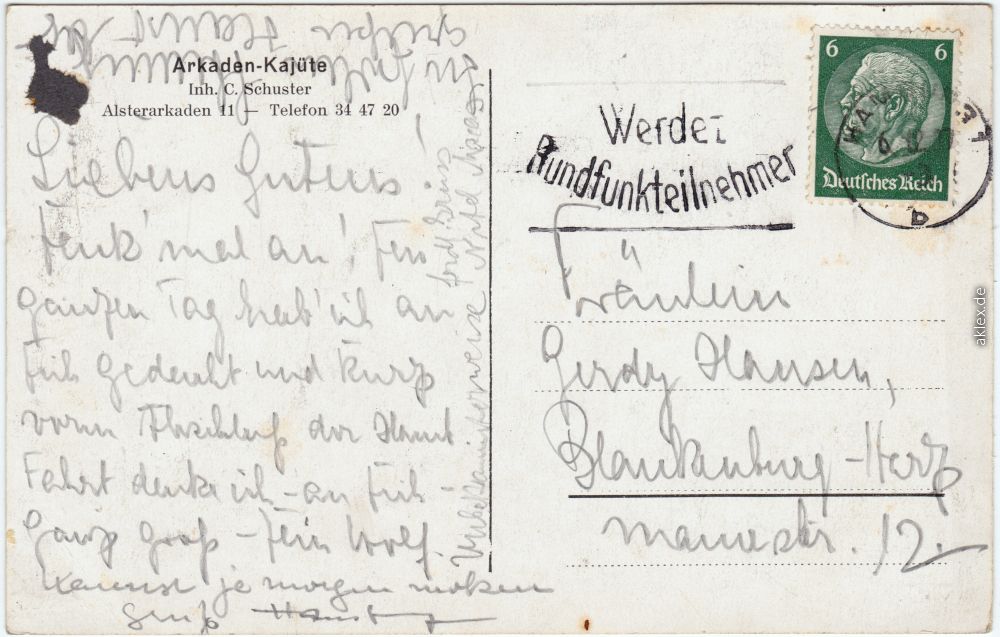 Ansichtskarte: Arkaden Kajüte - Hamburg