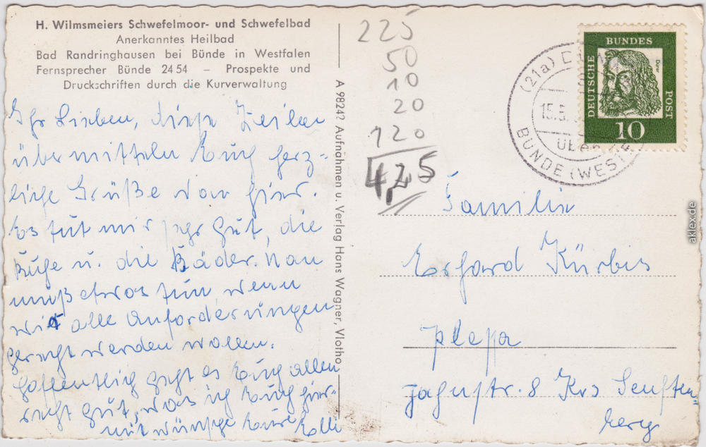 Ansichtskarte: Wilmsmeiers Schwefelmoorbad Bad Randringhausen - Bünde