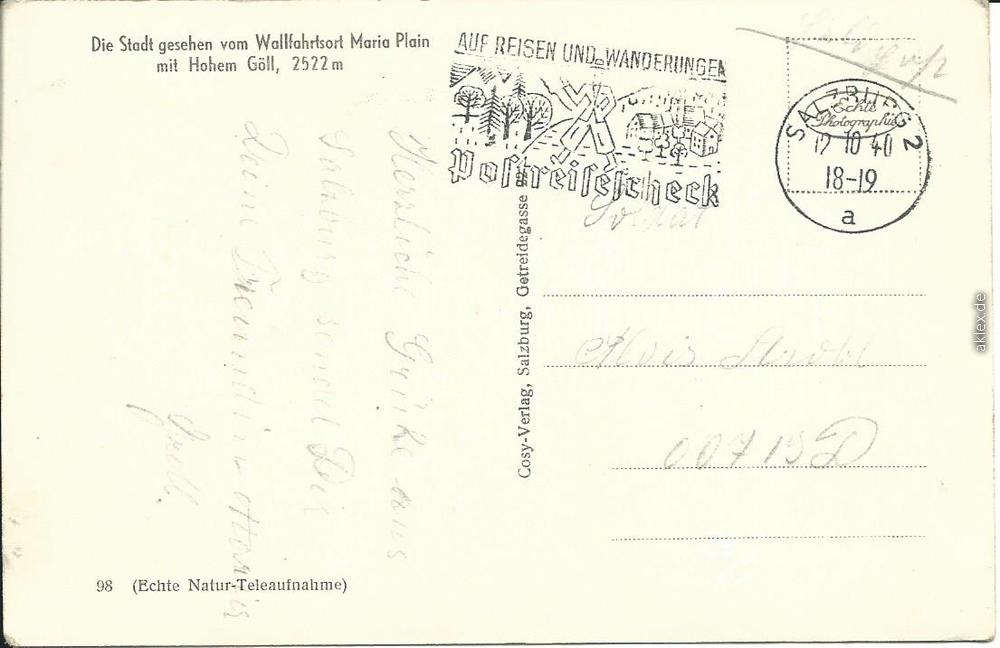 diese Karte können Sie hier kaufen:- Maria Plain Die Stadt gesehen vom Wallfahrtsort Maria Plain mit Hohem göll 1940