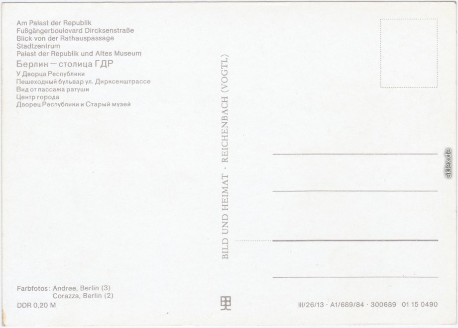 Foto Karte: Am Palast der Republik, Fußgängerboulevard Dircksenstraße, Blick von der Rathauspassage, Stadtzentrum, Palast der Republik und Altes Museum - Mitte-Berlin