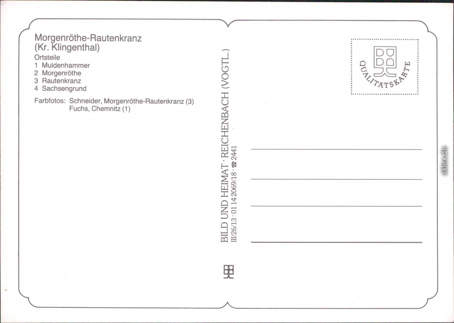 - 1. Muldenhammer, 2. Morgenröthe, 3. Rautenkranz - Kirche, 4. Sachsengrund