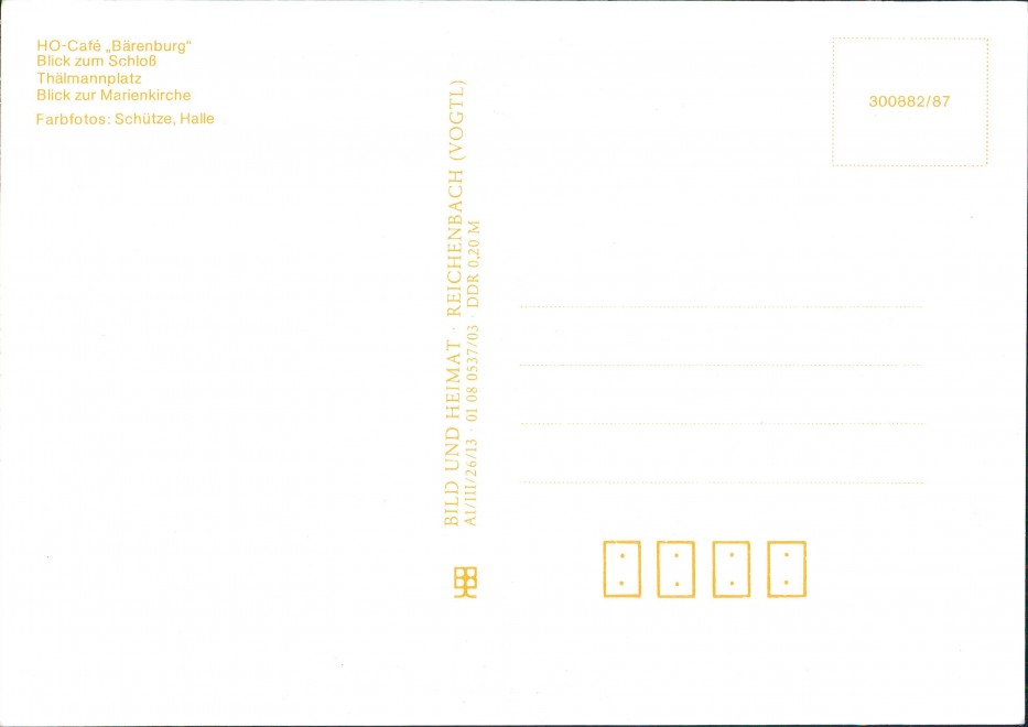 - HO-Café "Bärenburger", Blick zum Schloß, Thälmannplatz, Blick zur Marienkirche