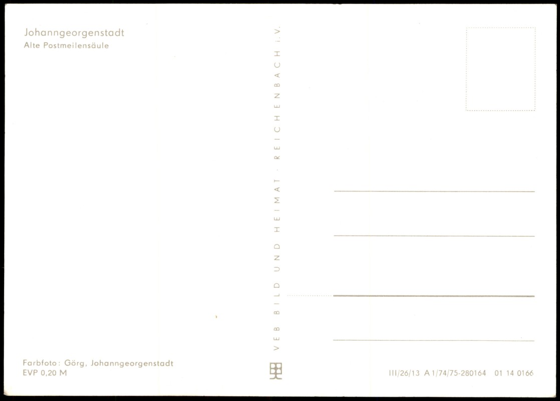 Ansichtskarte: Postmeilensäule - Johanngeorgenstadt
