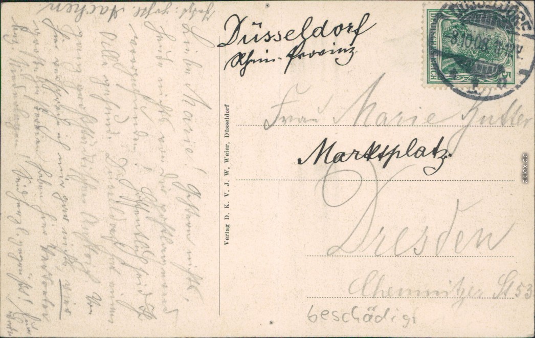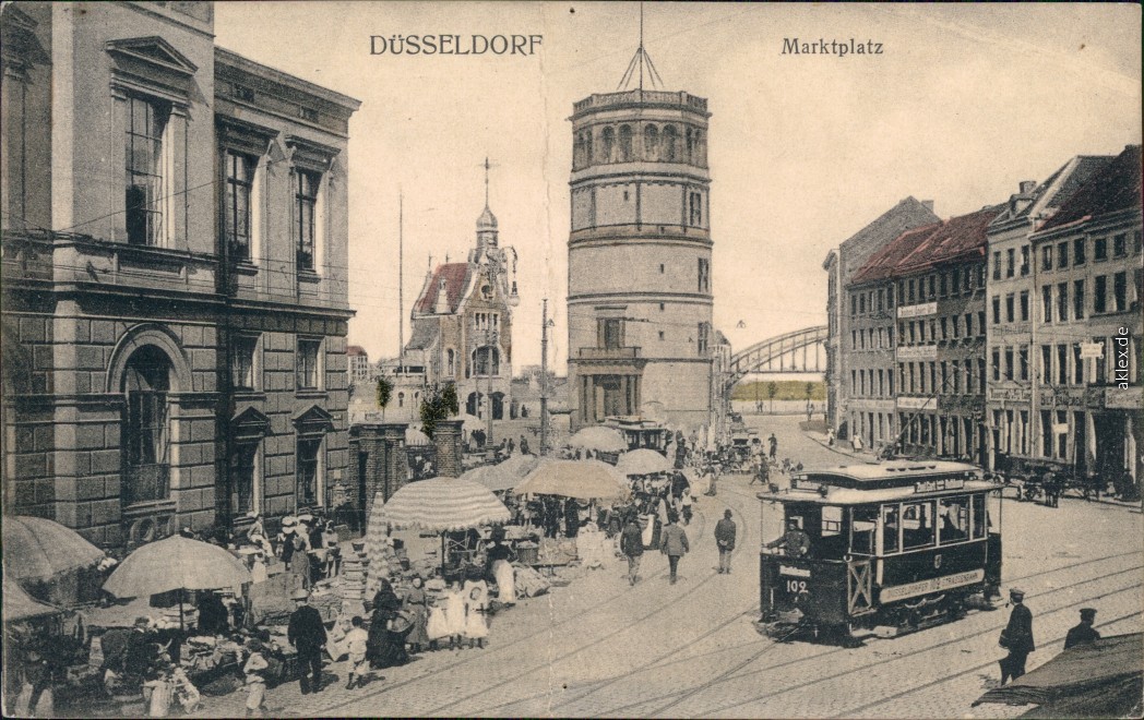 Ansichtskarte: Marktplatz, Markttreiben - Straßenbahn - Düsseldorf