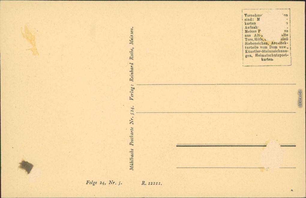 auf der Rückseite Kleberückstände und abgerissenes Papier
