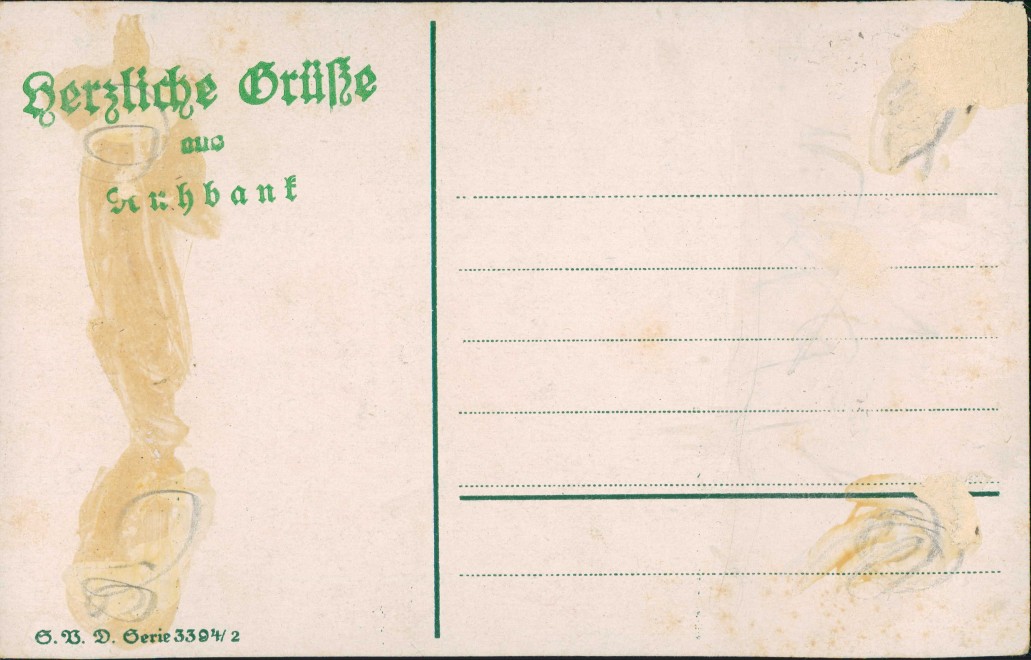 auf der Rückseite Kleberückstände und abgerissenes Papier