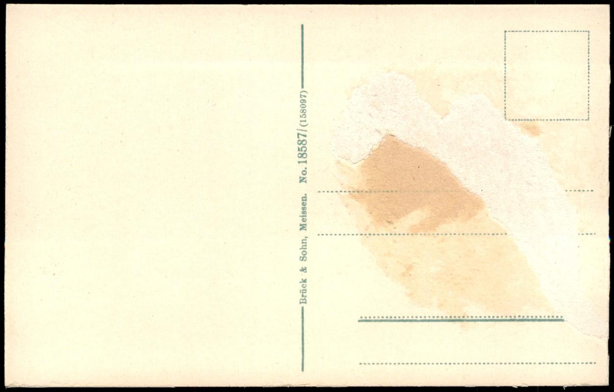 auf der Rückseite Kleberückstände und abgerissenes Papier