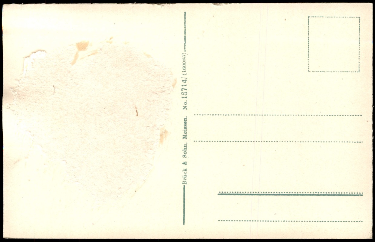 auf der Rückseite Kleberückstände und abgerissenes Papier