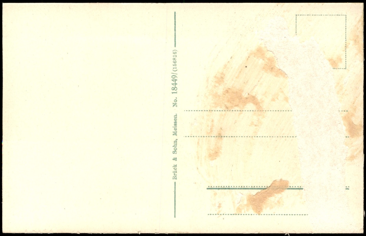 auf der Rückseite Kleberückstände und abgerissenes Papier