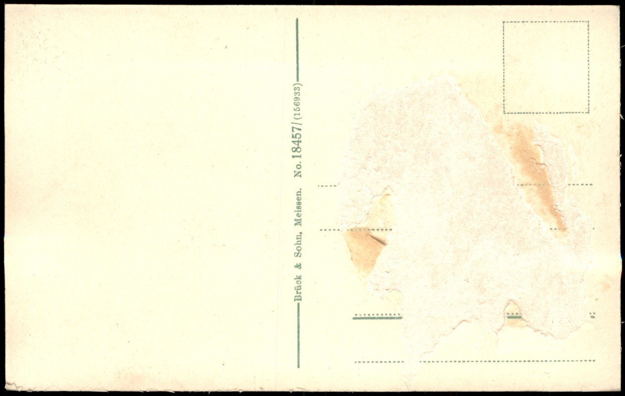 auf der Rückseite Kleberückstände und abgerissenes Papier