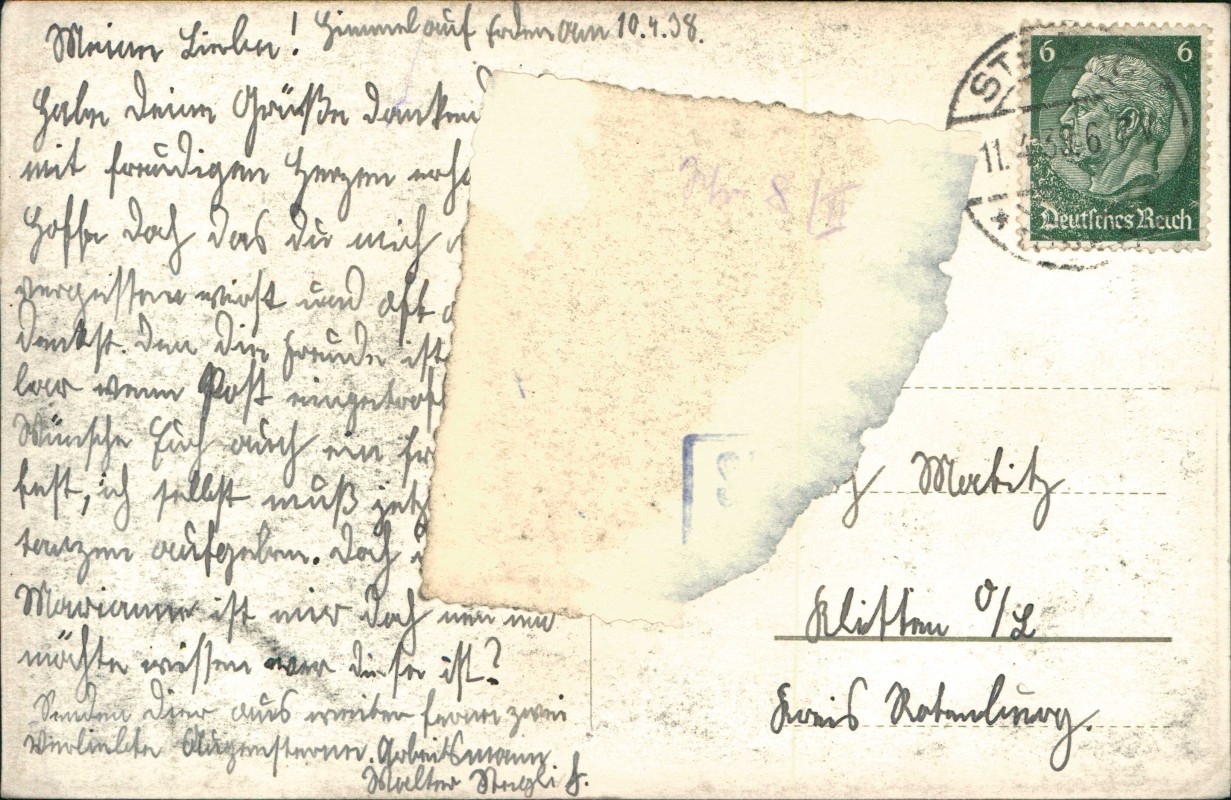 Papier angeklebt auf der Rückseite
