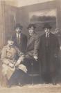 Soldaten - Gruppenaufnahme im Gehöft mit Frauen