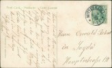 Herzlichen Ostergruss, Frau mit Weidenkorb, Henne und Eier