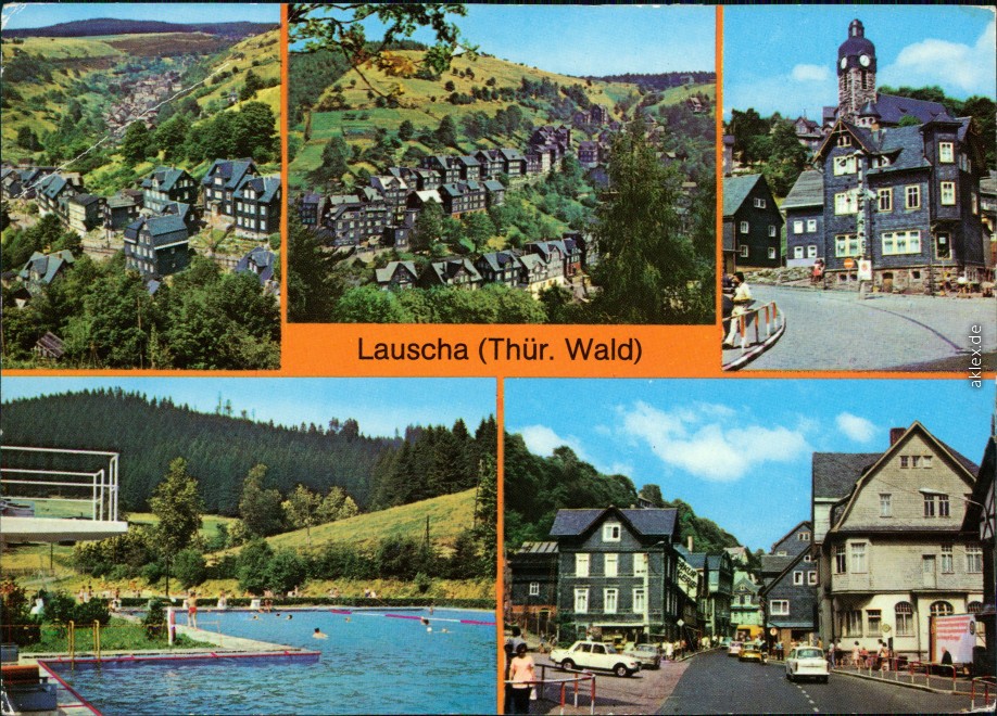 Ansichtskarte: Teilansichten, Hüttenplatz, Bad Kulturhaus am Hüttenplatz - Lauscha