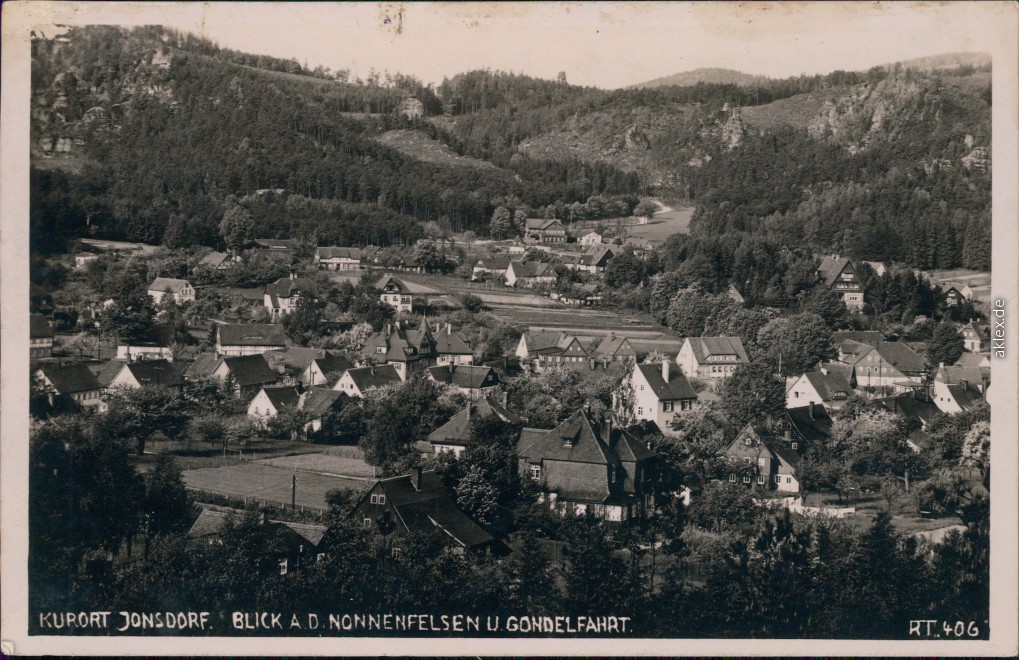 Ansichtskarte: Blick zum Nonnenfelsen und Gondelfahrt - Jonsdorf