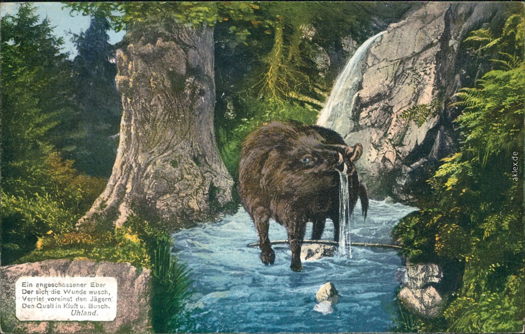 Ansichtskarte: Tiere - Wildschweine - Eber - mit Spruch