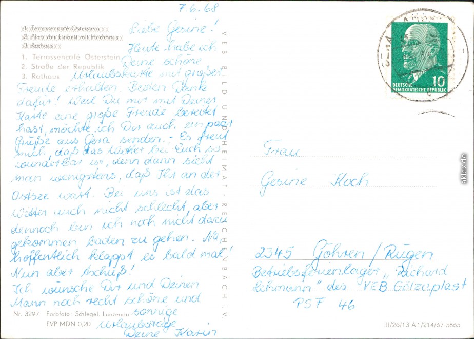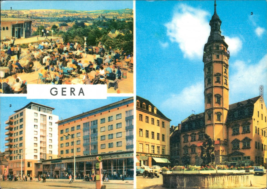 Ansichtskarte: Terrassencafé, Straße der Republik, Rathaus - Gera