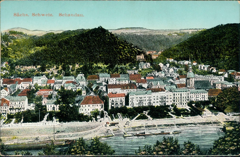 Ansichtskarte: Panorama-Ansicht - Zeichnung - Bad Schandau