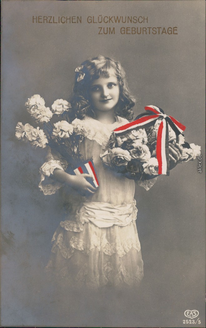Ansichtskarte: Glückwunsch Geburtstag - Mädchen mit Blumen in der Hand