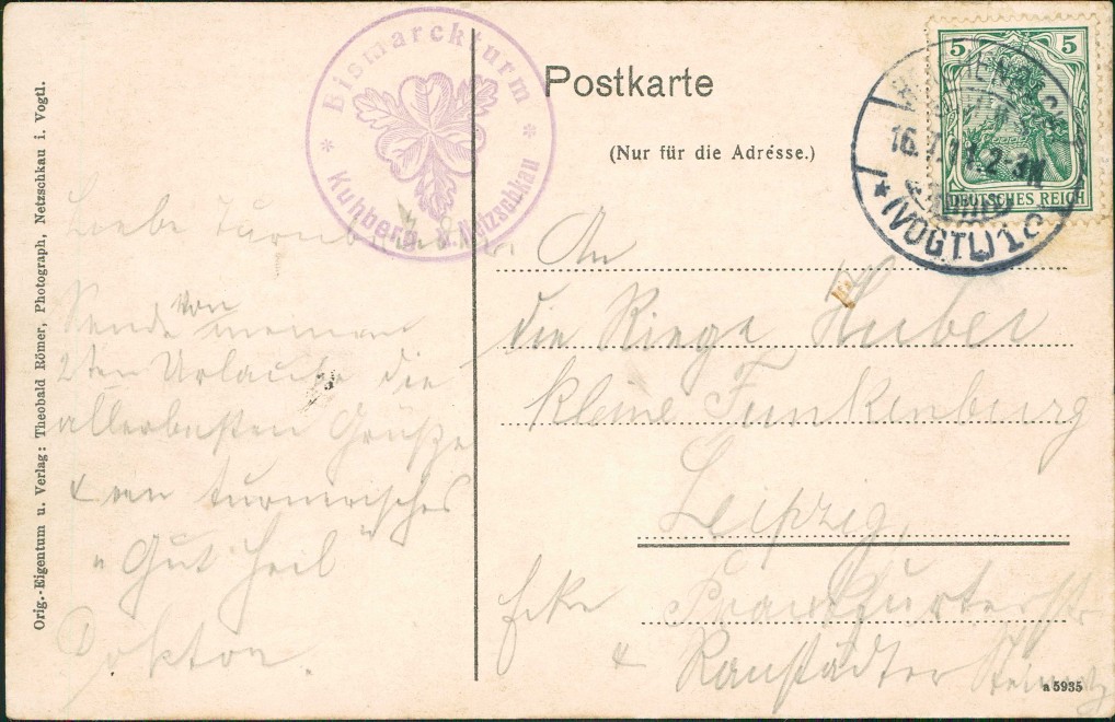 Ansichtskarte: Partie am Bismarckturm Kuhberg - Netzschkau (Vogtland)