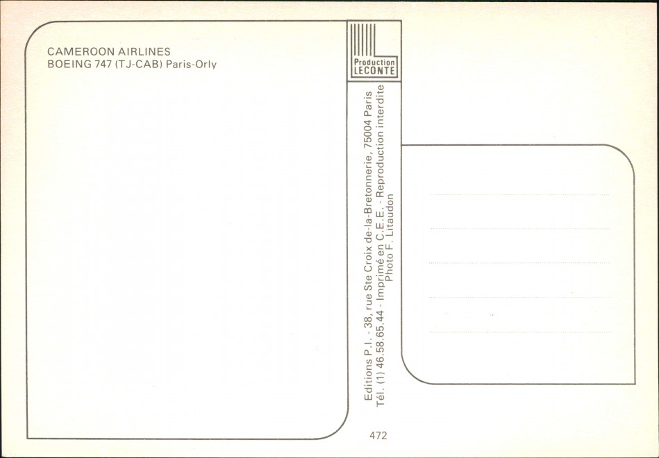 Ansichtskarte: Flugzeug "Cameroon Airlines" - Boeing 747