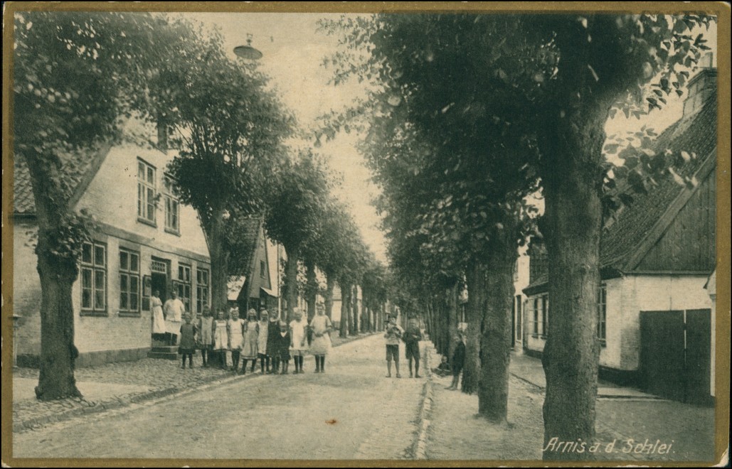 Ansichtskarte: Straßenpartie, Kinder - Arnis an der Schlei