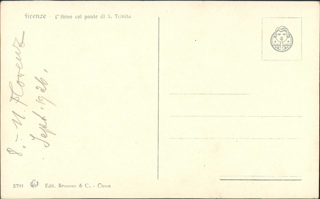 Ansichtskarte: Brücke - Kanal - Kähne - Wohnhaus - Florenz