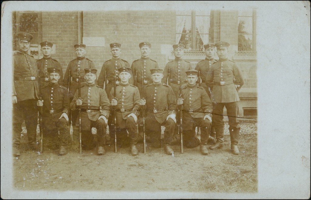 - Soldaten mit Gewehren vor einem Haus 1.WK