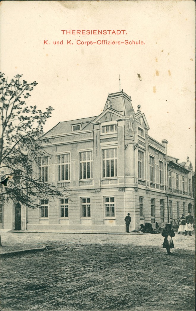 Ansichtskarte: Straße KuK Corps Offiziers-Schule - Theresienstadt