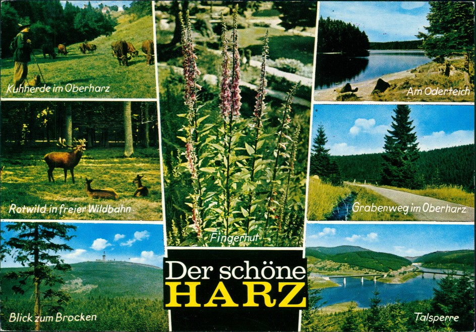 Ansichtskarte: Kuhherde im Oberharz, Fingerhut, Oberteich, Rotwild, Grabenweg, Brocken, Talsperre - .Sachsen-Anhalt