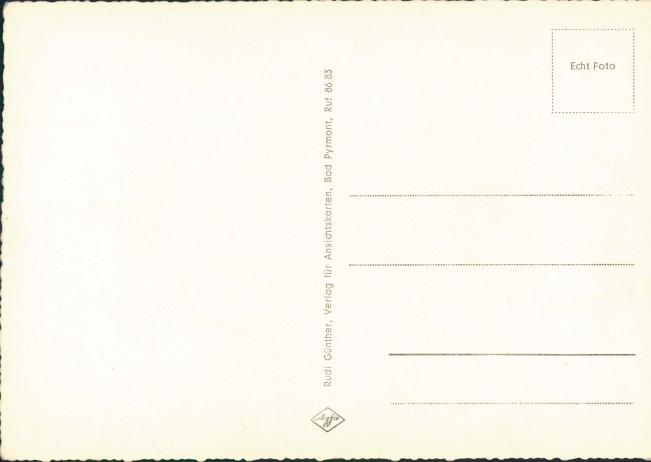 - Rudi Günther, Verlag für Ansichtskarten, Bad Pyrmont, Ruf 86 83