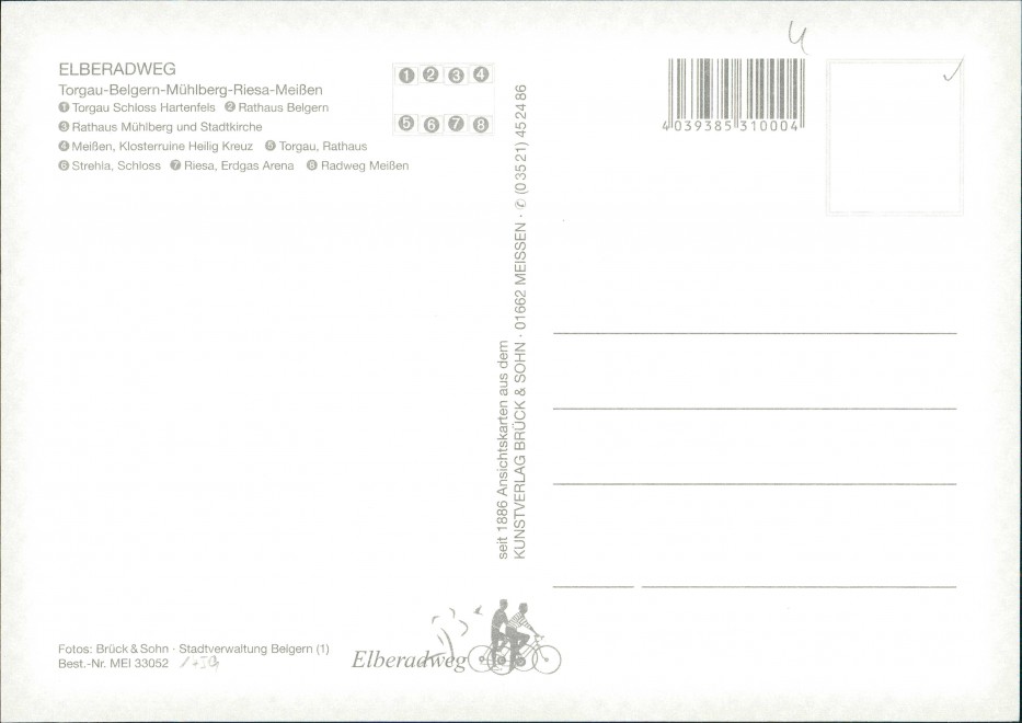 Ansichtskarte: Elbe-Radweg rund um Riesa, Fluss-Verlauf, Radfahrerkarte