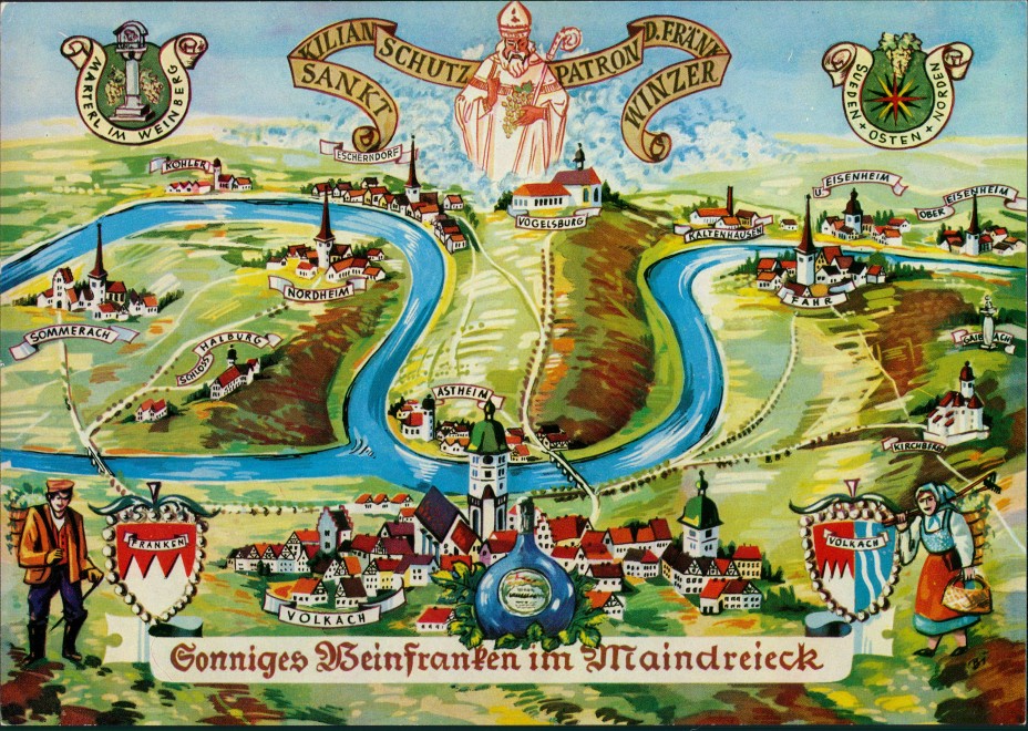 Ansichtskarte: Region Volkach, Weinfranken, Main-Dreieck, Reliefkarte
