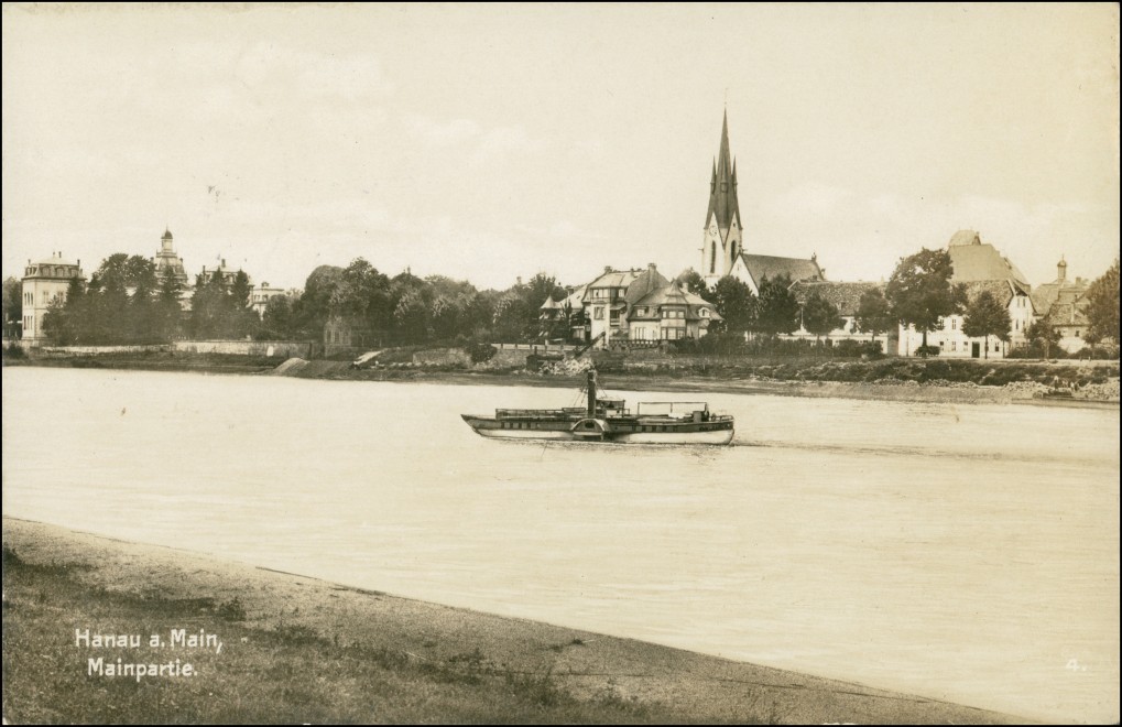 Foto Karte: Main Partie mit Schiff, Dampfschiff - Frankfurt am Main
