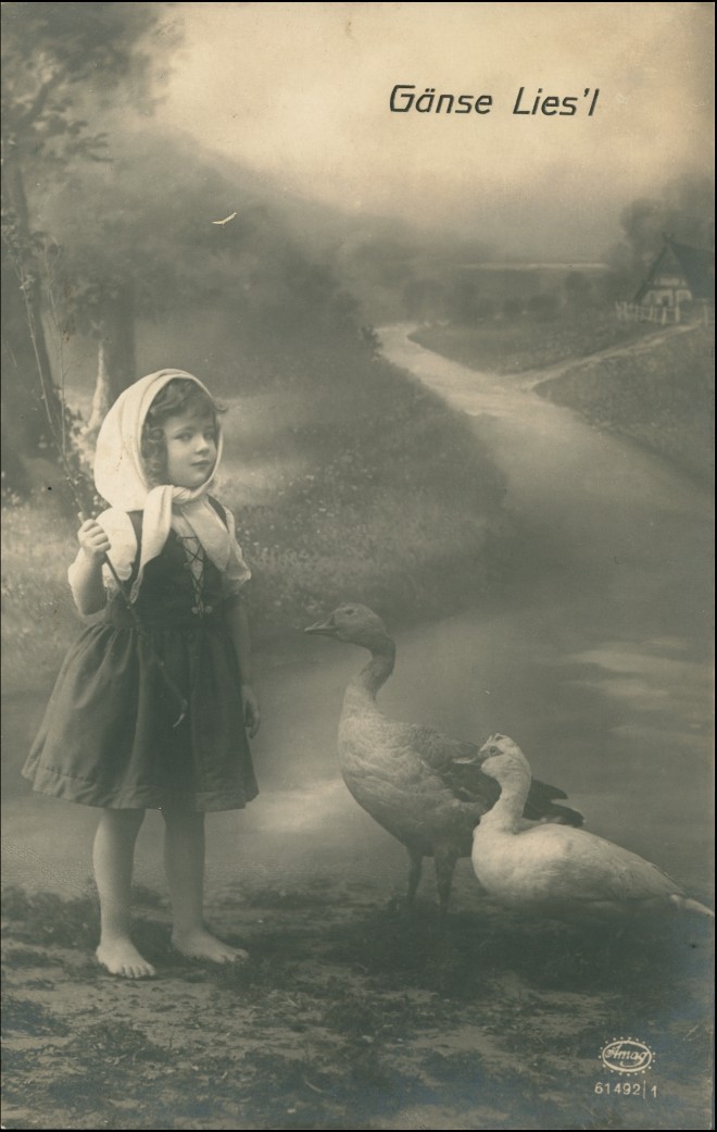 Ansichtskarte: Fotokunst Gänse Liesl - Mädchen mit Gänsen Fotokunst