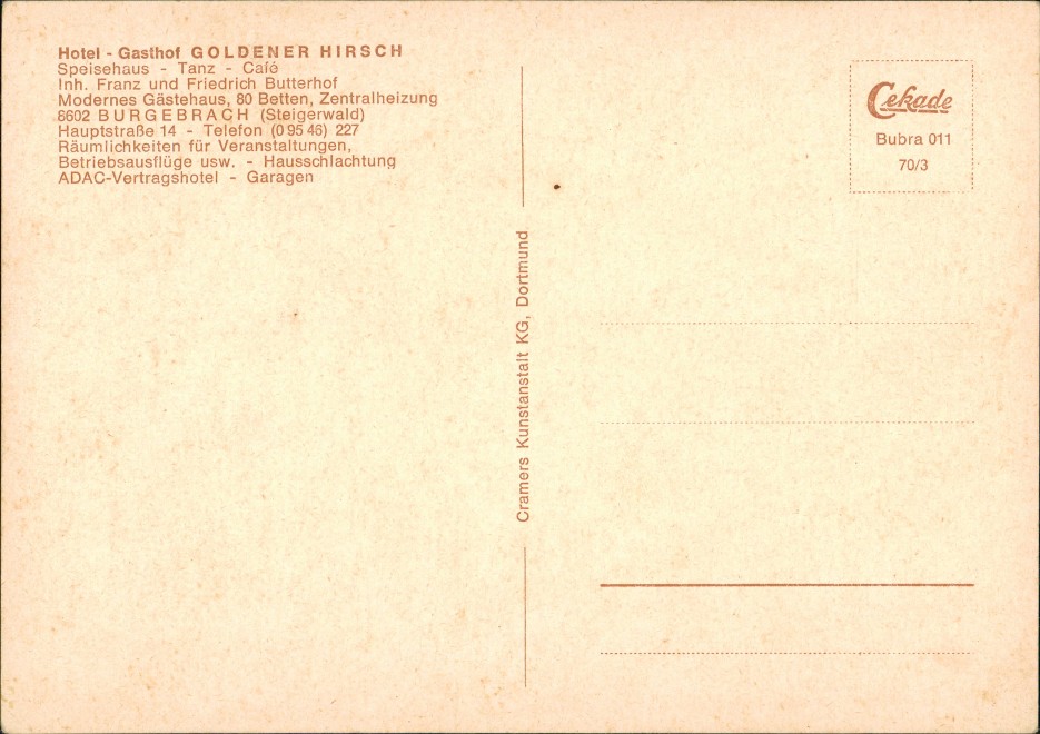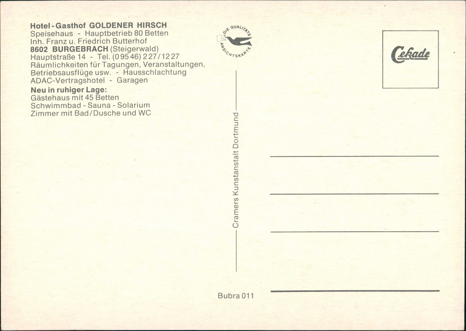 Ansichtskarte: Hotel goldener Hirsch - Burgebrach