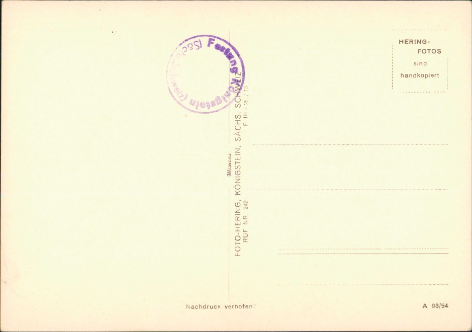 Ansichtskarte: Festung Königstein vom Pfaffenstein - Königstein (Sächsische Schweiz)