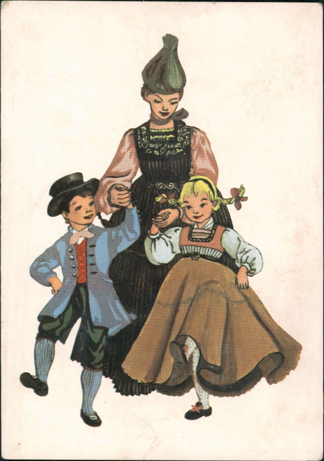 Ansichtskarte: R.R. Wien Frau und Kinder in Tracht - Künstlerkarte