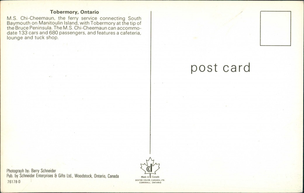 Foto Karte: M.S. Chi-Cheemaun ferry service Baymouth Manitoulin Island - Tobermory