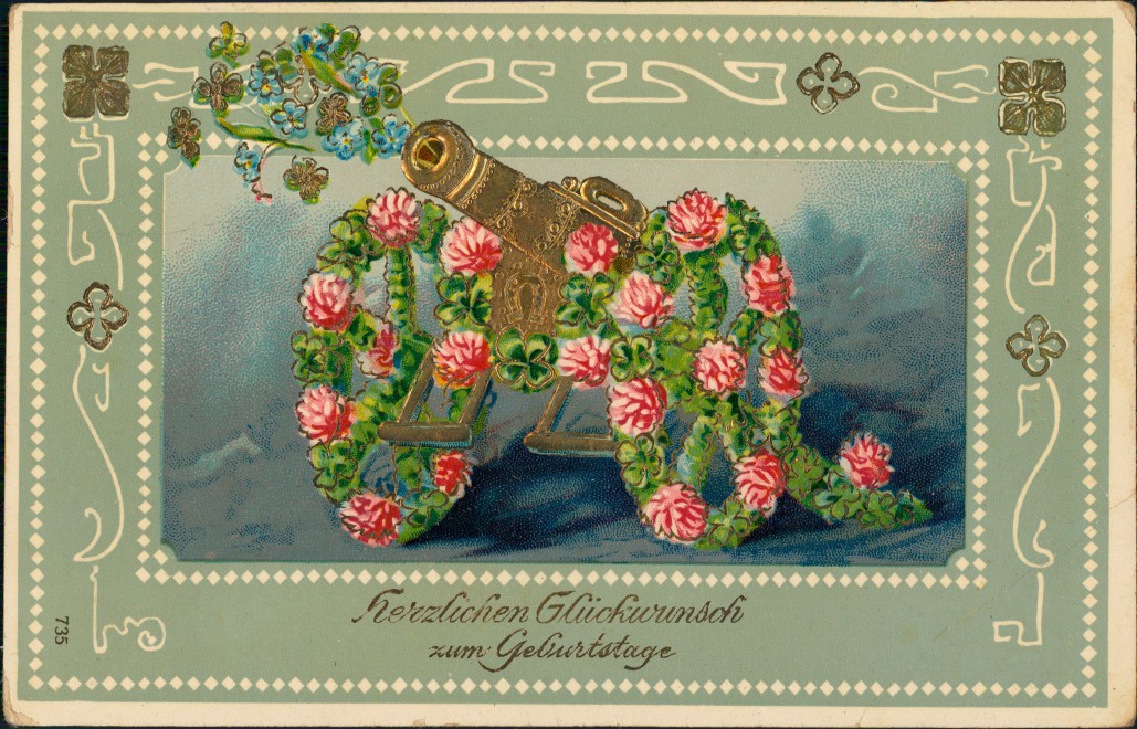 Ansichtskarte: Glückwunsch Gruß Geburtstag Böller aus goldener Kanone